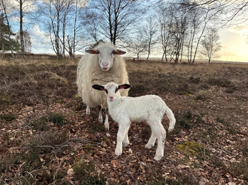 Die Schafe bekommen die Lämmer draußen in der Heide und werden von uns dann in den Stall geholt. Dort bleiben sie ein paar Tage, damit sich die Mutter-Kind-Bindung festigt. Im Stall bekommen die Lämmer auch ihre Ohrmarken, damit wir mit unserer Herdbuchzucht nicht durcheinander kommen.